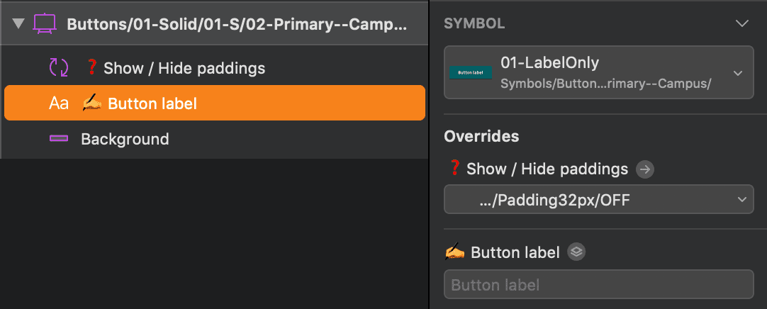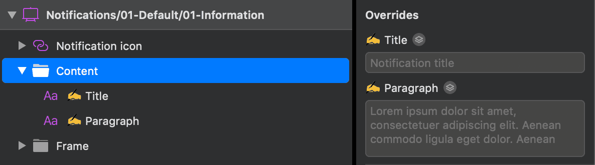 🛠 ToolKitThis section contains the symbols created to build the pattern symbols, and they are accessible through symbol overrides. Please don't use directly this symbols in your project.